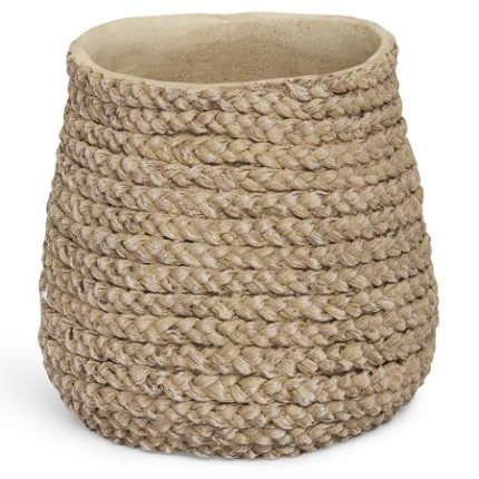 Vaso cachepô decorativo bege G de cimento com textura imitando fibra