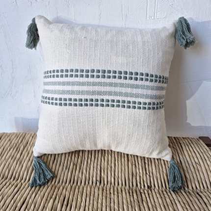 Capa de almofada decorativa verde com tassel cru BOHO artesanal 50×50