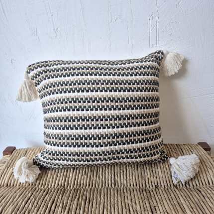 Capa de almofada decorativa preta boho com tassel artesanal 45×45 de algodão