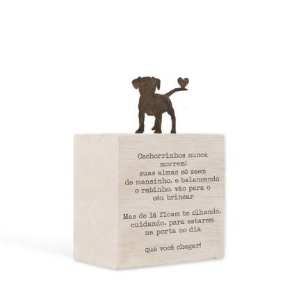 Frase: Cachorrinhos nunca morrem: suas almas só saem de mansinho, e balançando o rabinho, vão para o céu brincar. Mas de lá ficam te olhando, cuidando, para estarem na porta no dia que você chegar!