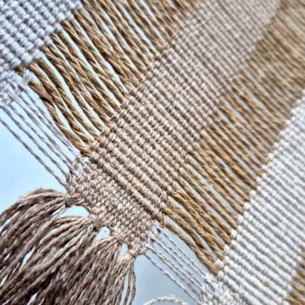 Xale tecido manualmente no tear mineiro. Textura macia e delicada.
