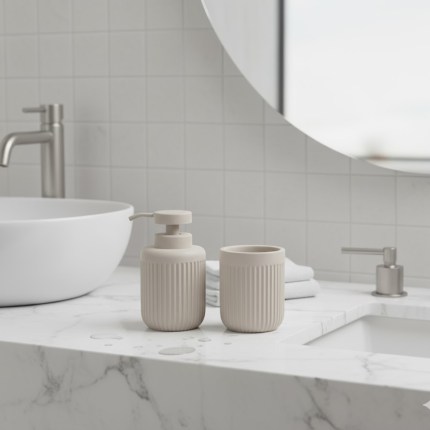 Tamanho: Porta sabonete 20 x 9 | Porta escova 12,5 x 9 | Cachepô com tampa 11 x 9 cm