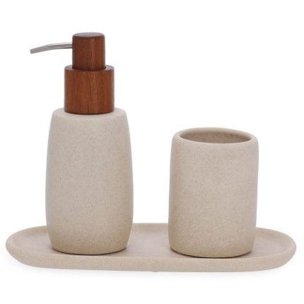 Tamanho: PORTA-SABONETE LÍQUIDO 17,5 x 7 / COPO 9 x 7 cm / BANDEJA 1,5 x 23,5 x 12 cm