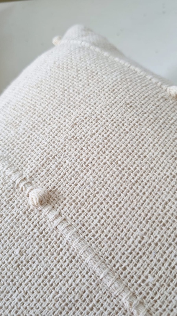 Nossa almofada é de algodão natural e combina em decoração rústica, boho e contemporânea. Perfeita para compor sofás, camas, poltronas ou bancos.