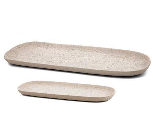Bandeja off white bege P de de cerâmica retangular orgânica