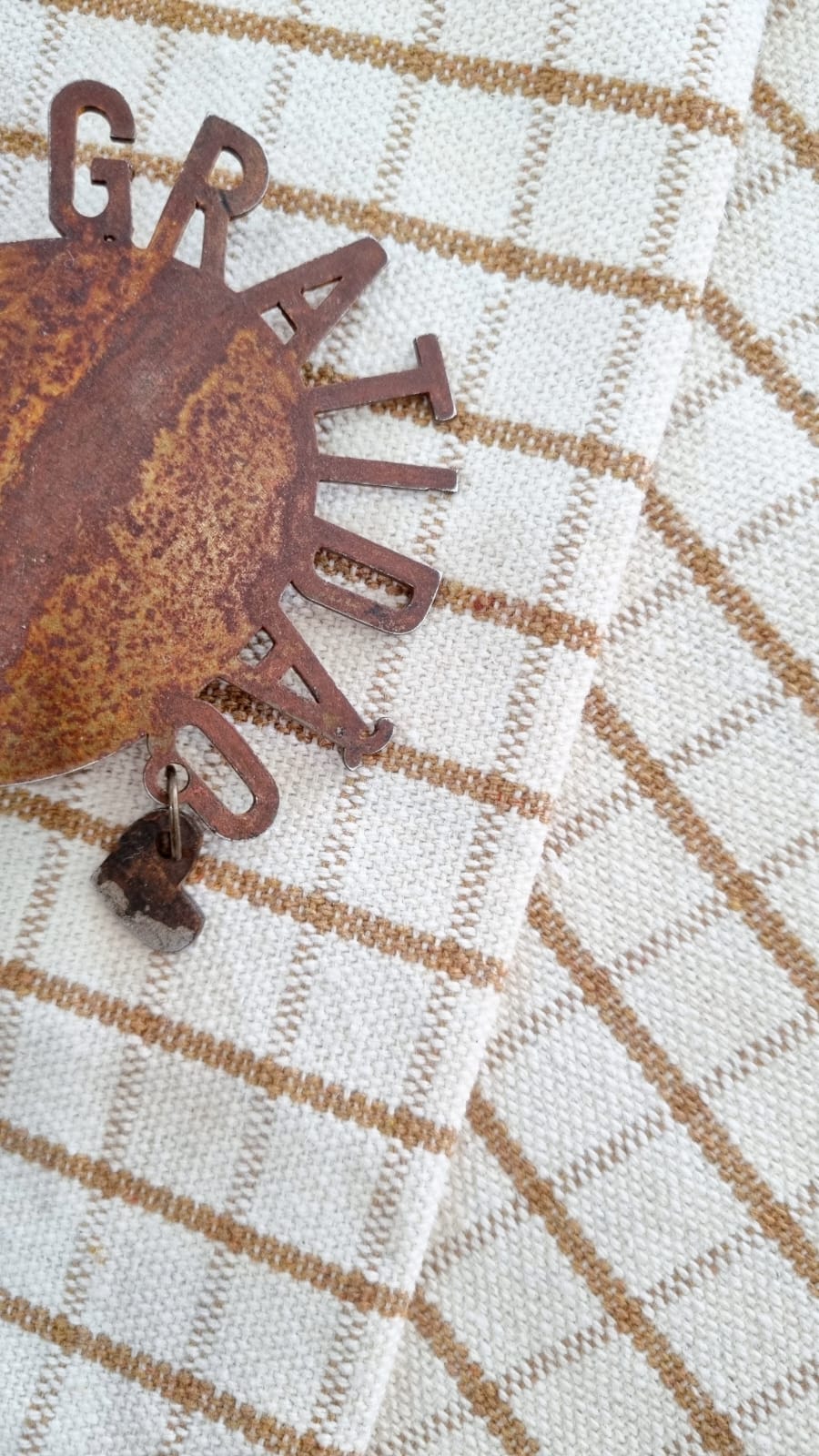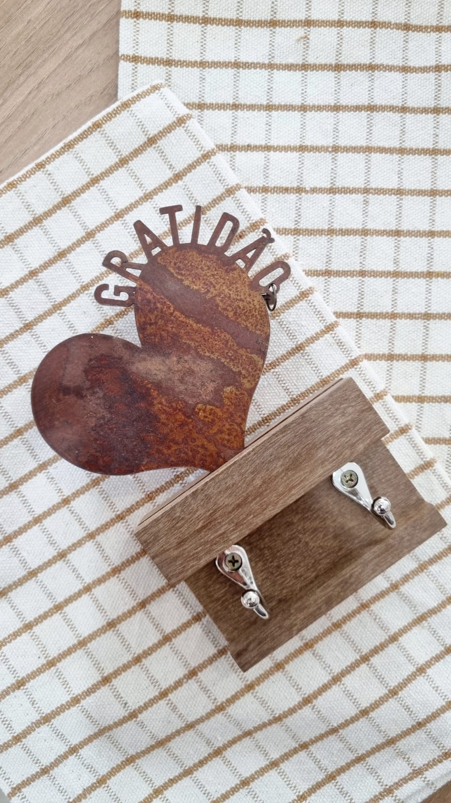 Material: madeira envelhecida e ferro oxidado, com ganchinhos cromados
