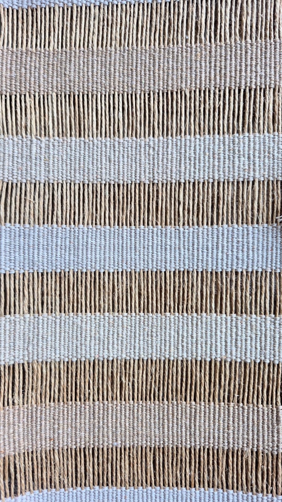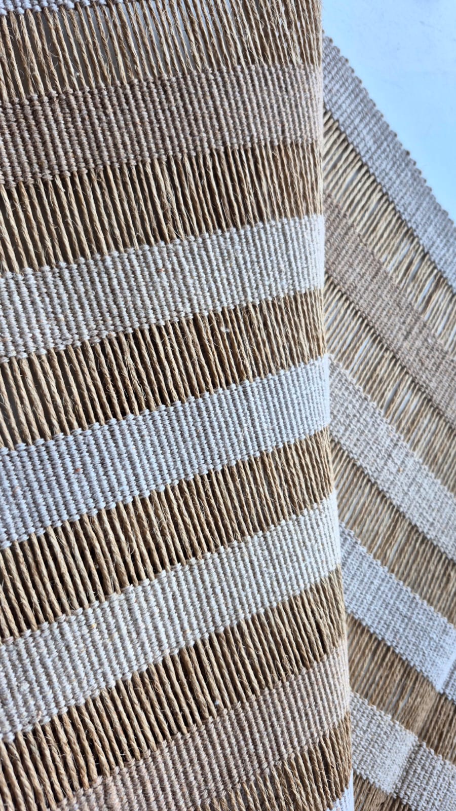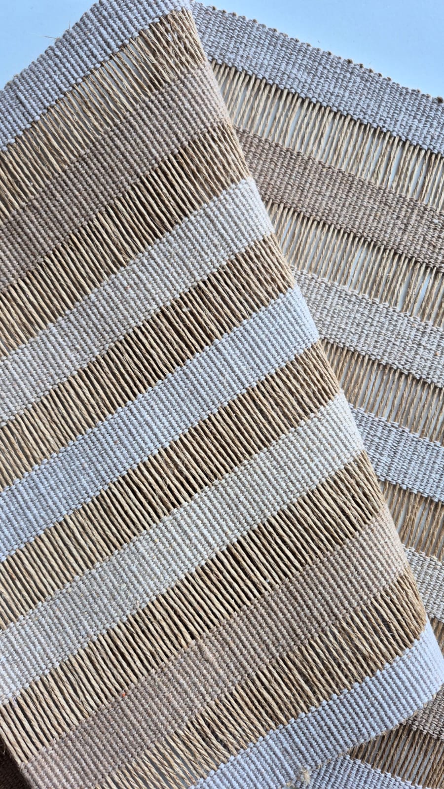 Caminho de mesa 2m bege degradê de fibra rami artesanal no tear mineiro