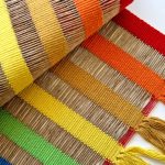 Caminho de mesa 2m colorido arco-íris de fibra rami artesanal no tear mineiro