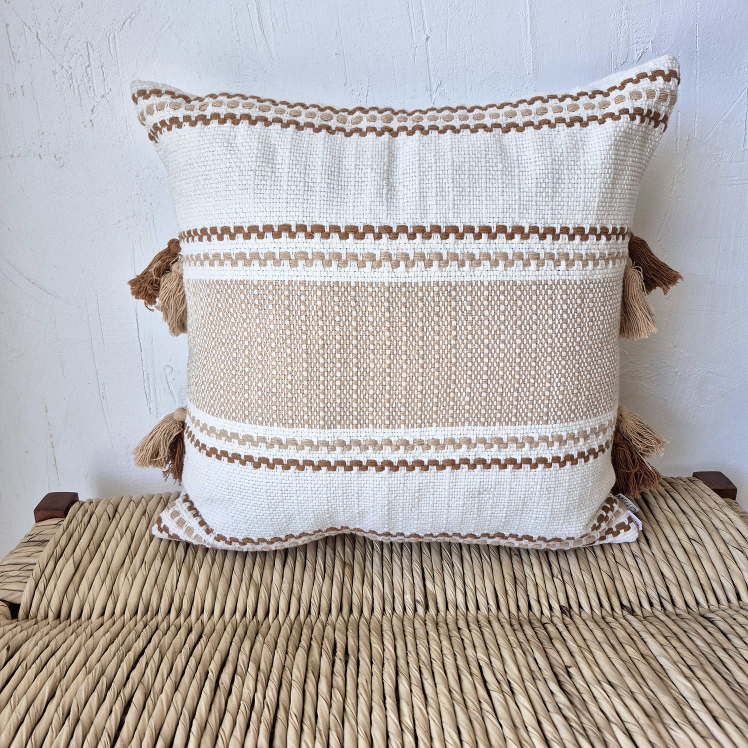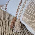 Capa de almofada decorativa bege caramelo BOHO com tassel artesanal 50×50