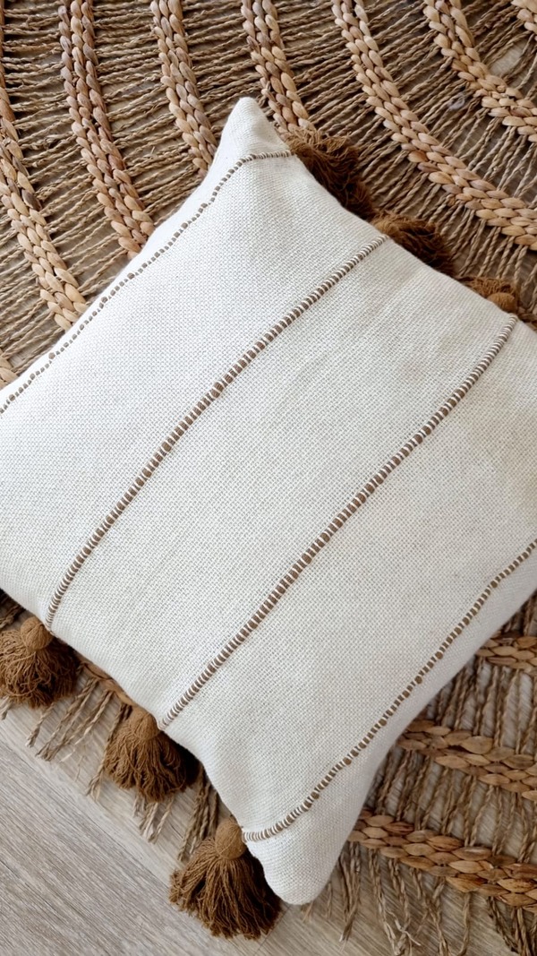 Capa de almofada decorativa bege caramelo com tassel lateral 45×45