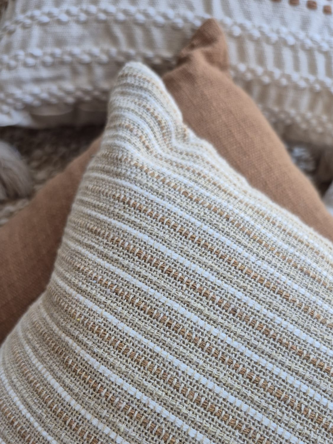 Capa de almofada feita à mão no tear mineiro. 100% artesanal com fios de algodão. Padrões e texturas que trazem a essência do Brasil para dentro da sua casa. Se você busca decoração afetiva, com alma e história, nossas almofadas são peças únicas.