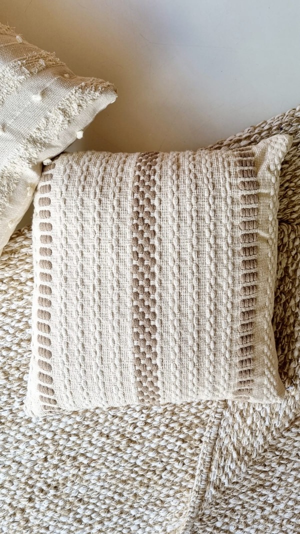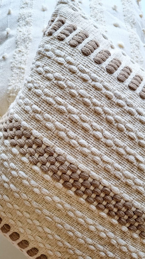 Capa de almofada feita à mão no tear mineiro. 100% artesanal com fios de algodão. Padrões e texturas que trazem a essência do Brasil para dentro da sua casa. Se você busca decoração afetiva, com alma e história, nossas almofadas são peças únicas.