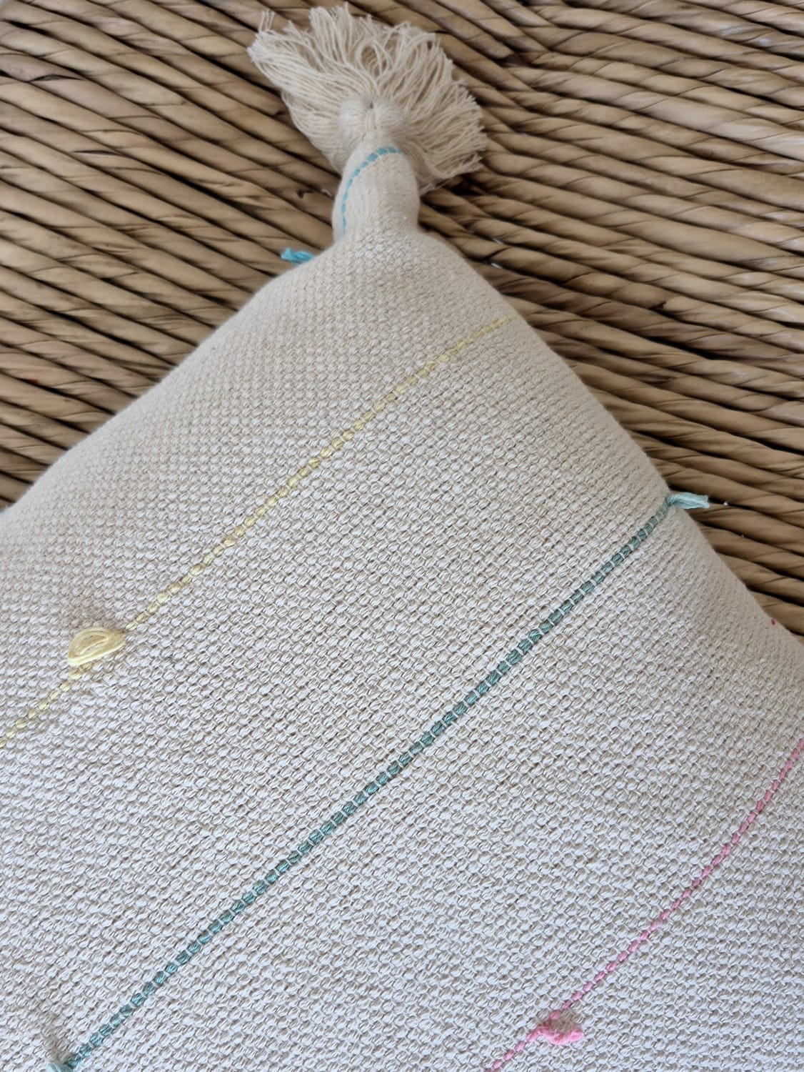 Capa de almofada decorativa colorida tons pastéis artesanal 40×40 de algodão