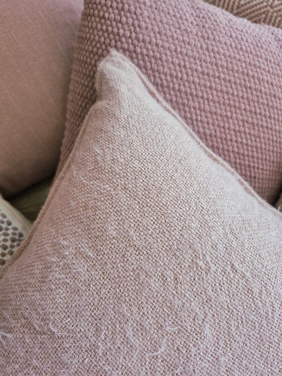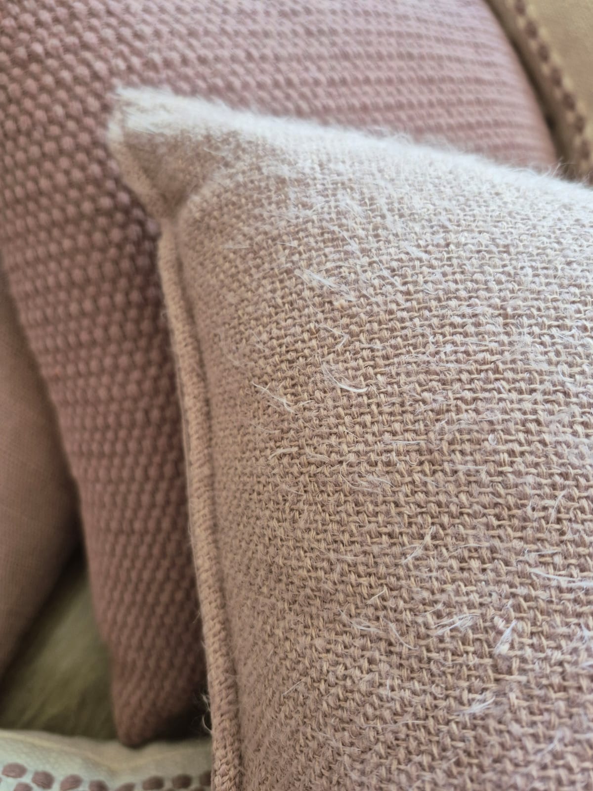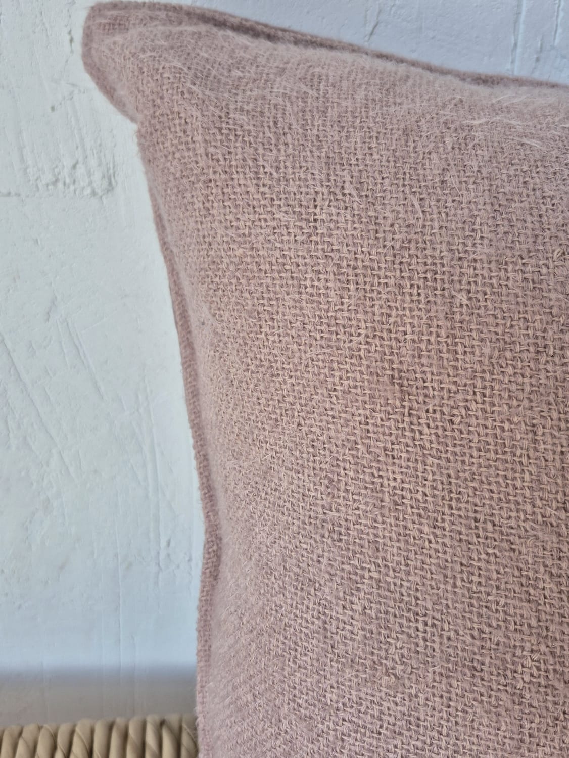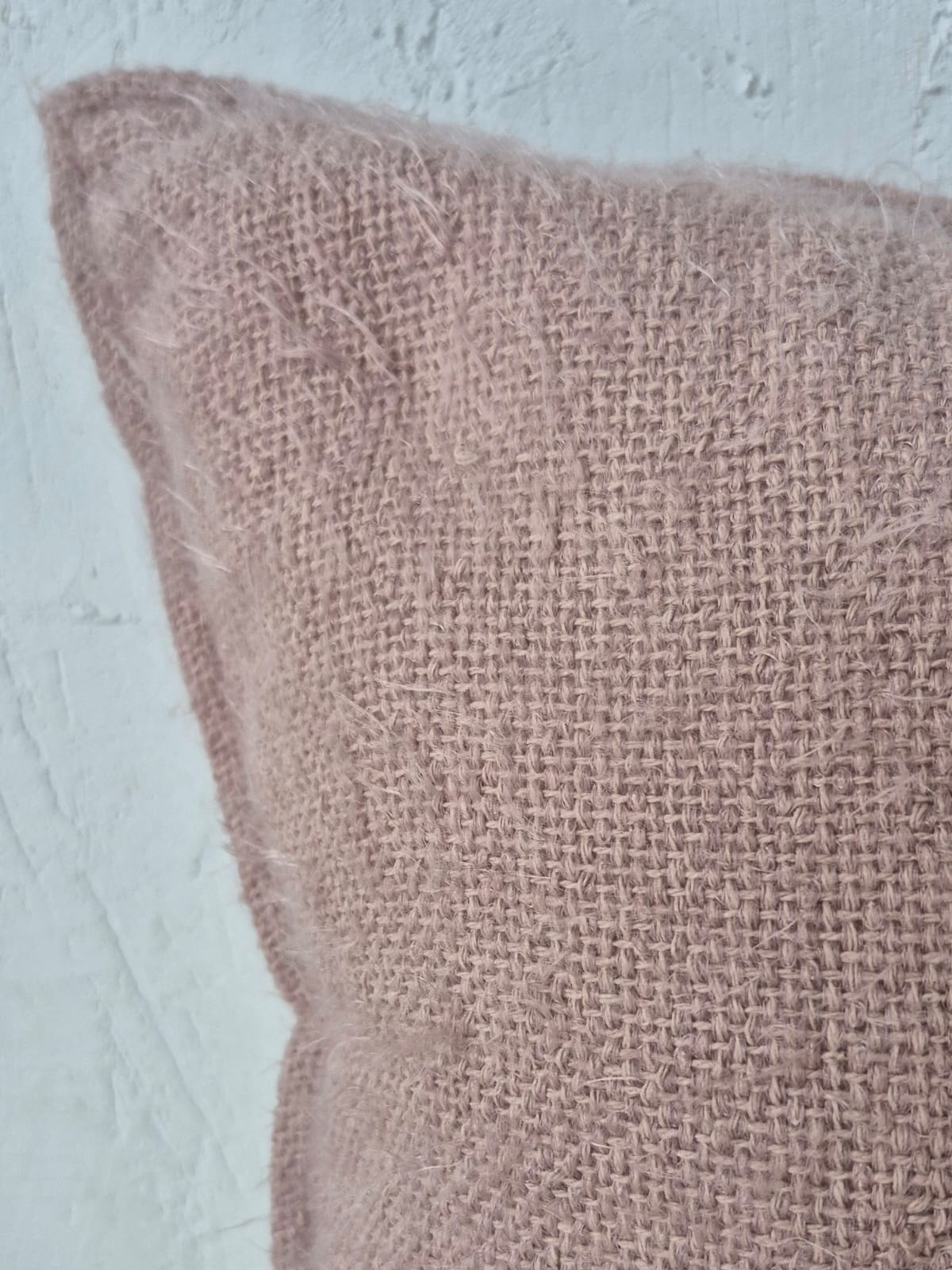Capa de almofada decorativa rosa chá peludinha artesanal 45×45 de algodão