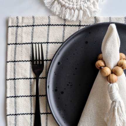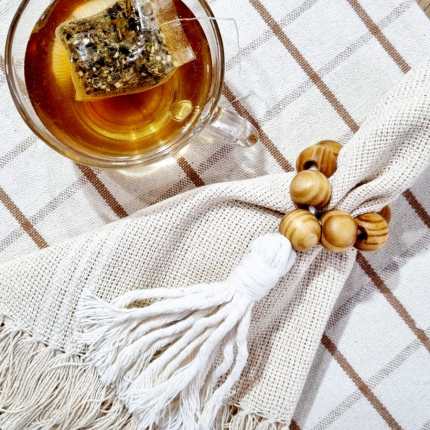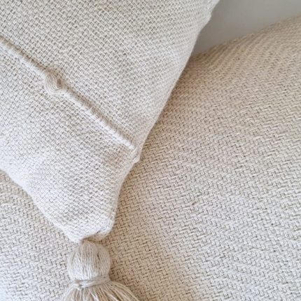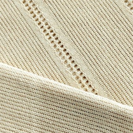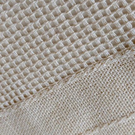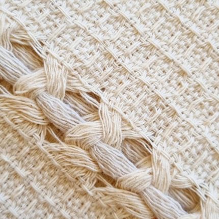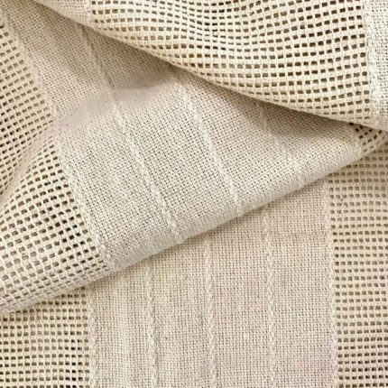 Trama vazada com textura delicada. Sua cor natural de algodão cru ou areia é de fácil combinação.