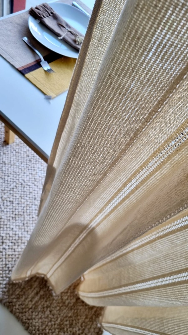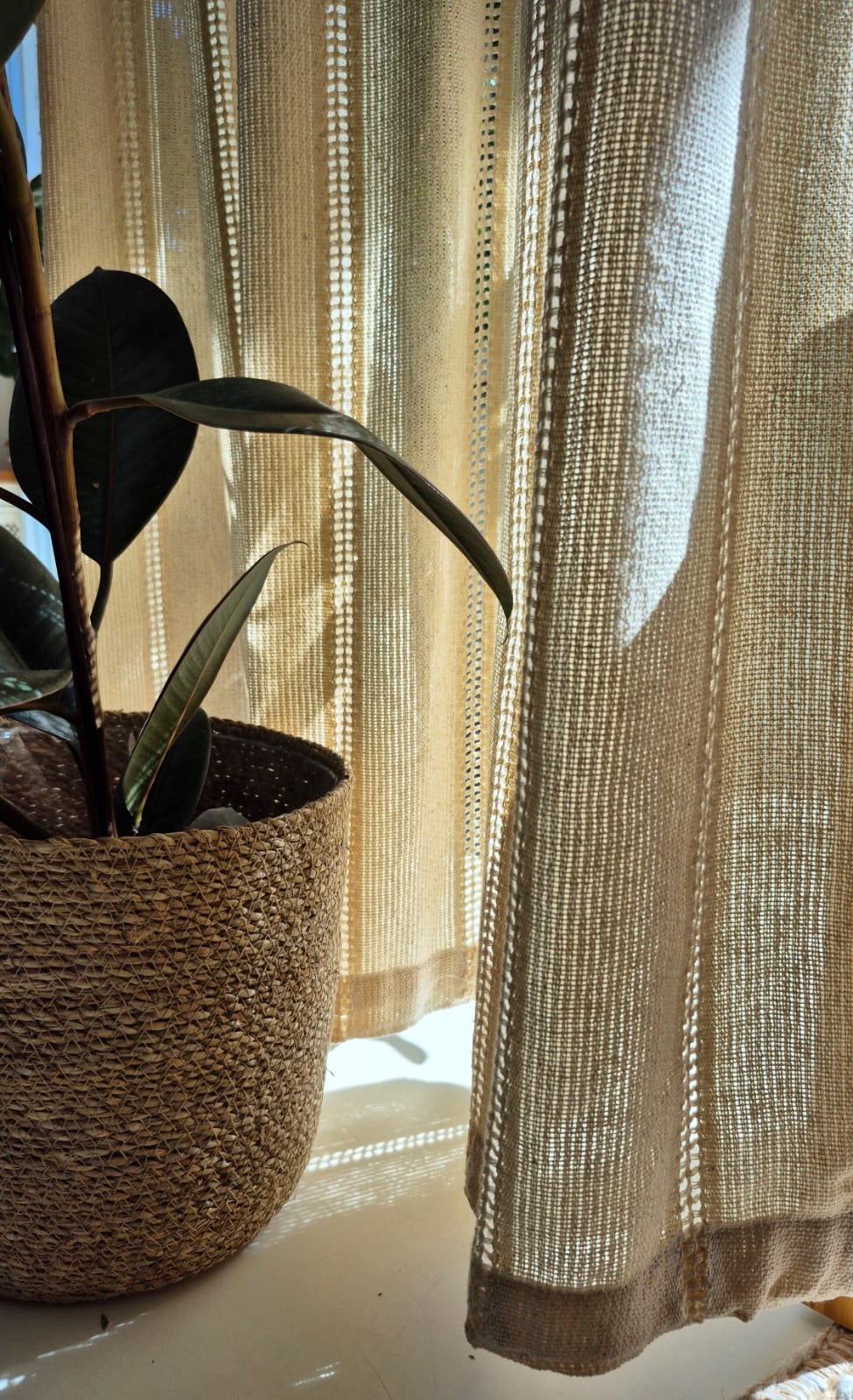 Cortina decorativa artesanal feita no tear para quem valoriza o feito à mão e deseja um toque rústico e único na decoração.
