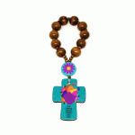 Acessório com crucifixo em MDF resinado, contas de madeira e miçangas coloridas. Nossos TERÇOS e DEZENAS tem mensagens de fé e devoção que vão te encantar.