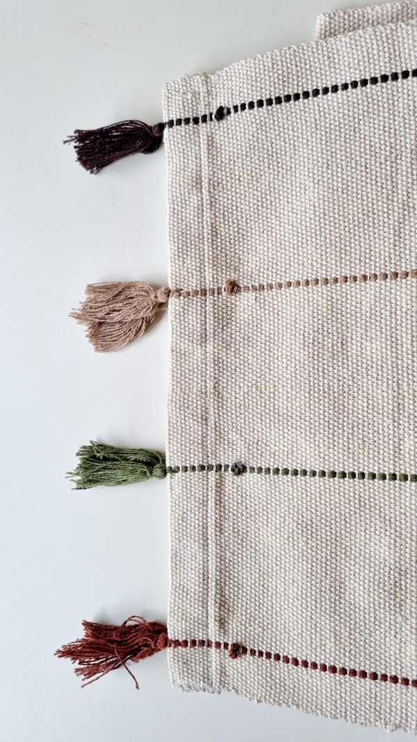 Jogo americano kit 2 lugares colorido tons terrosos com tassel BOHO no tear mineiro