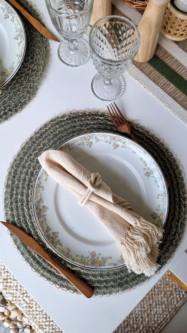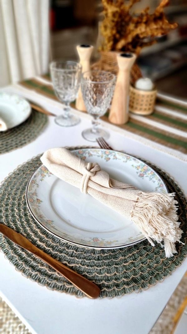 Transforme sua mesa com charme e delicadeza usando nosso jogo americano. Ideal para quem valoriza os pequenos detalhes e quer criar uma mesa posta elegante e acolhedora, seja no dia a dia ou em ocasiões especiais.