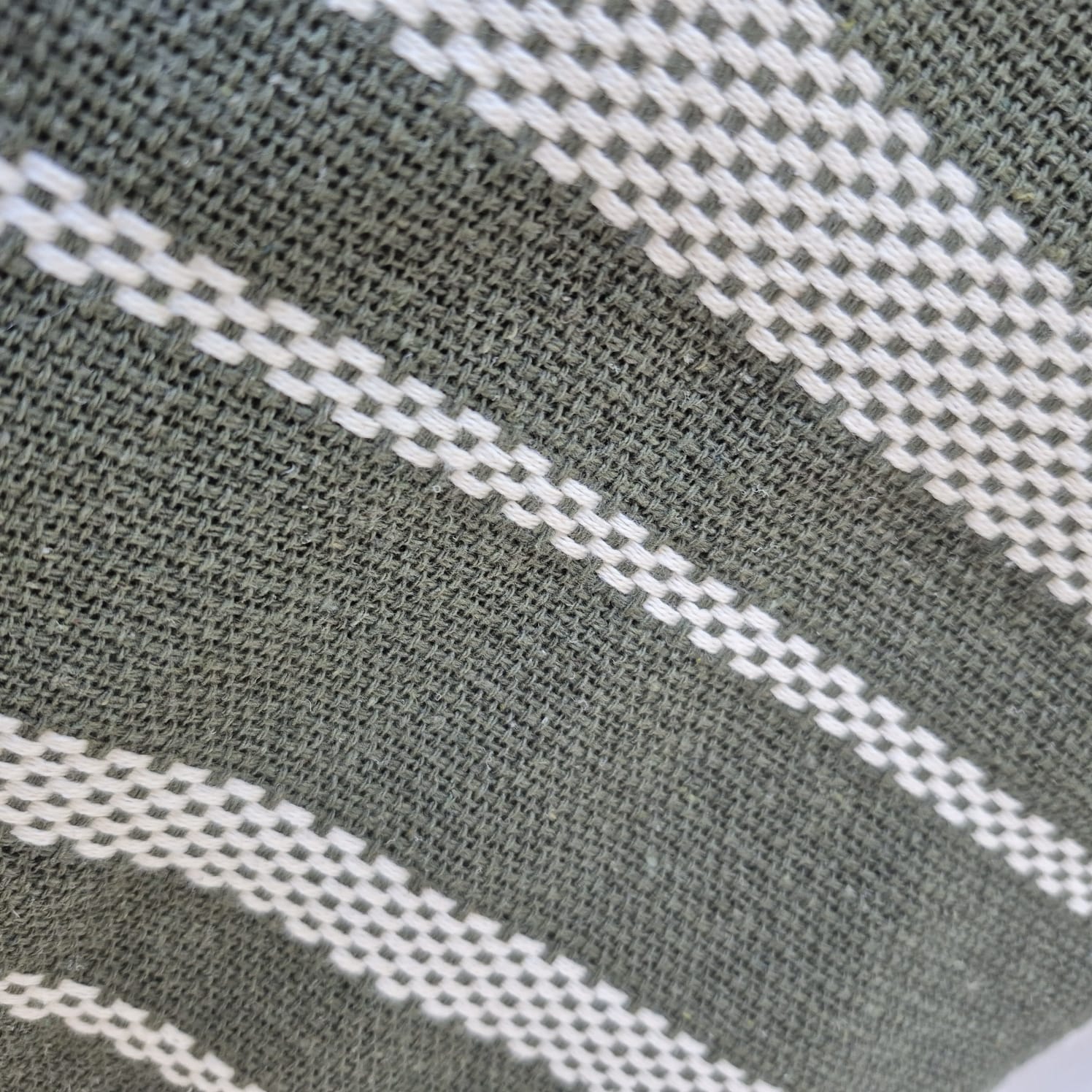 Manta de sofá decorativa artesanal verde musgo listrado de algodão