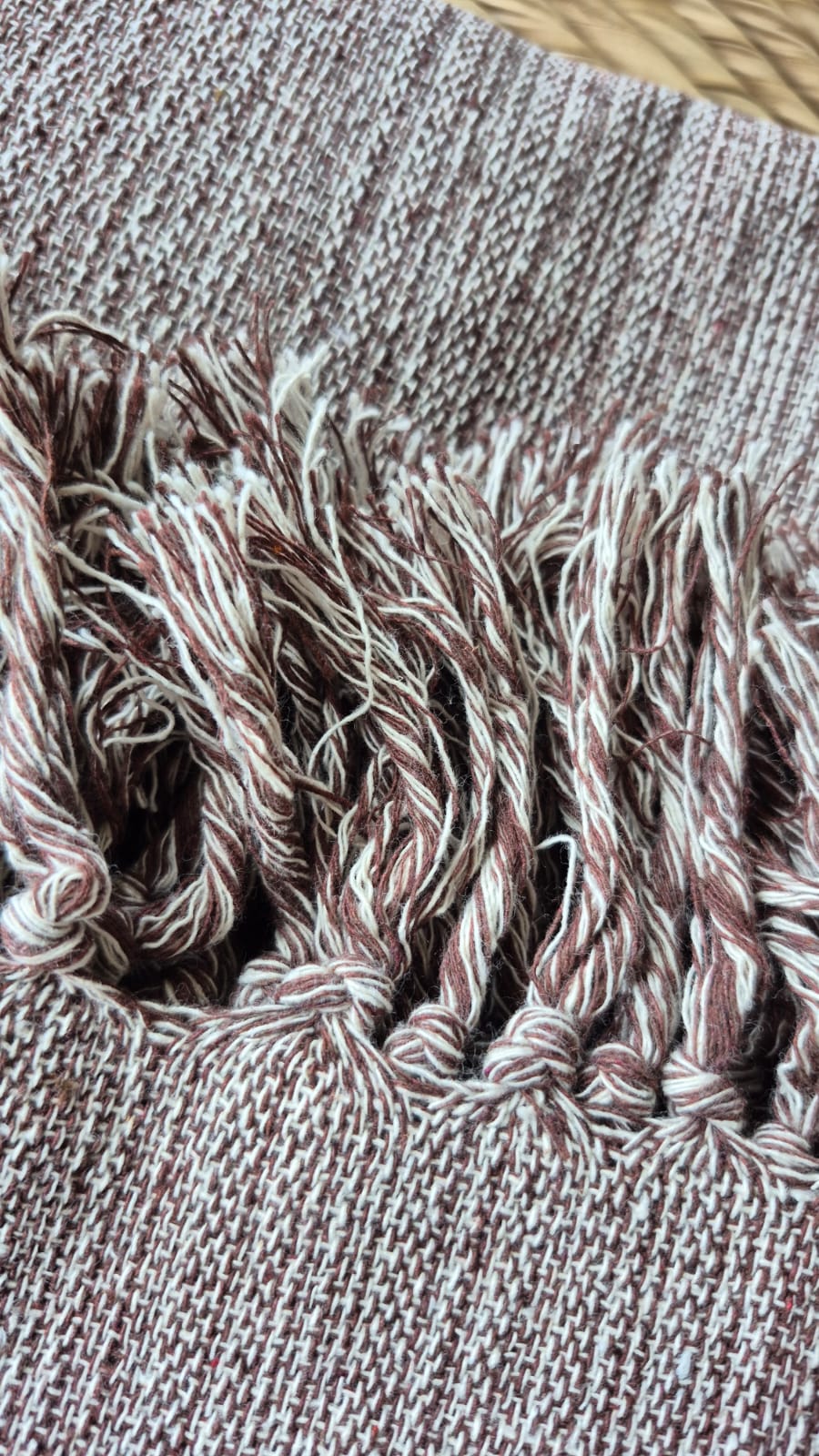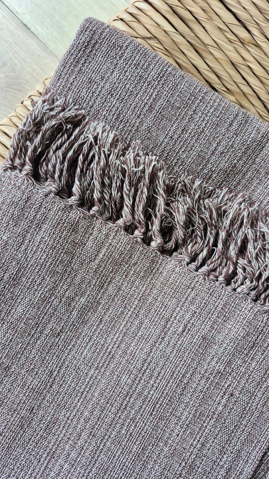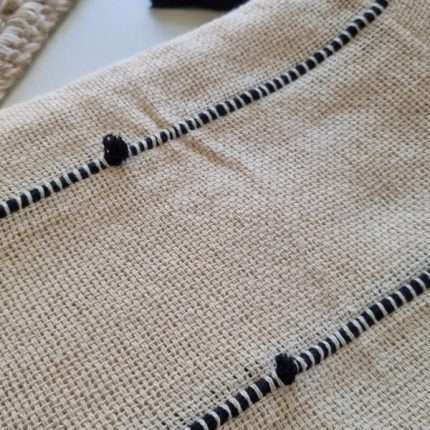 As franjas com nós são feitas a mão por artesãos, proporcionando resistência para não desfiar e ao mesmo tempo delicadeza.