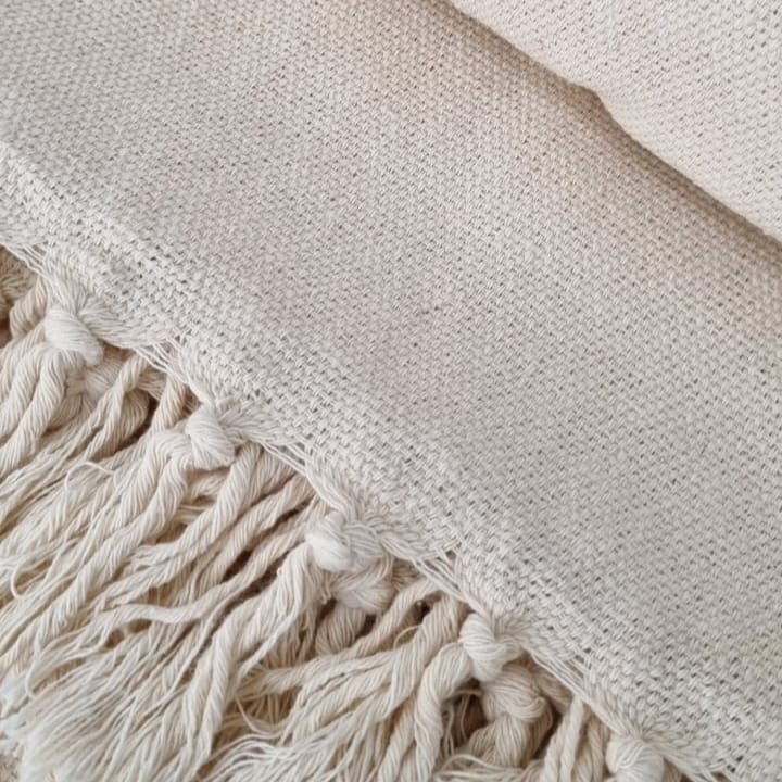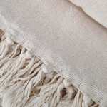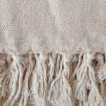 As franjas com nós são feitas a mão por artesãos, proporcionando resistência para não desfiar e ao mesmo tempo delicadeza.