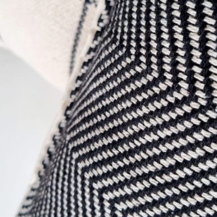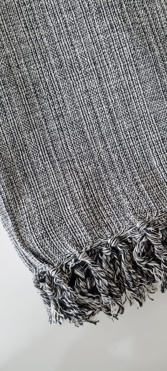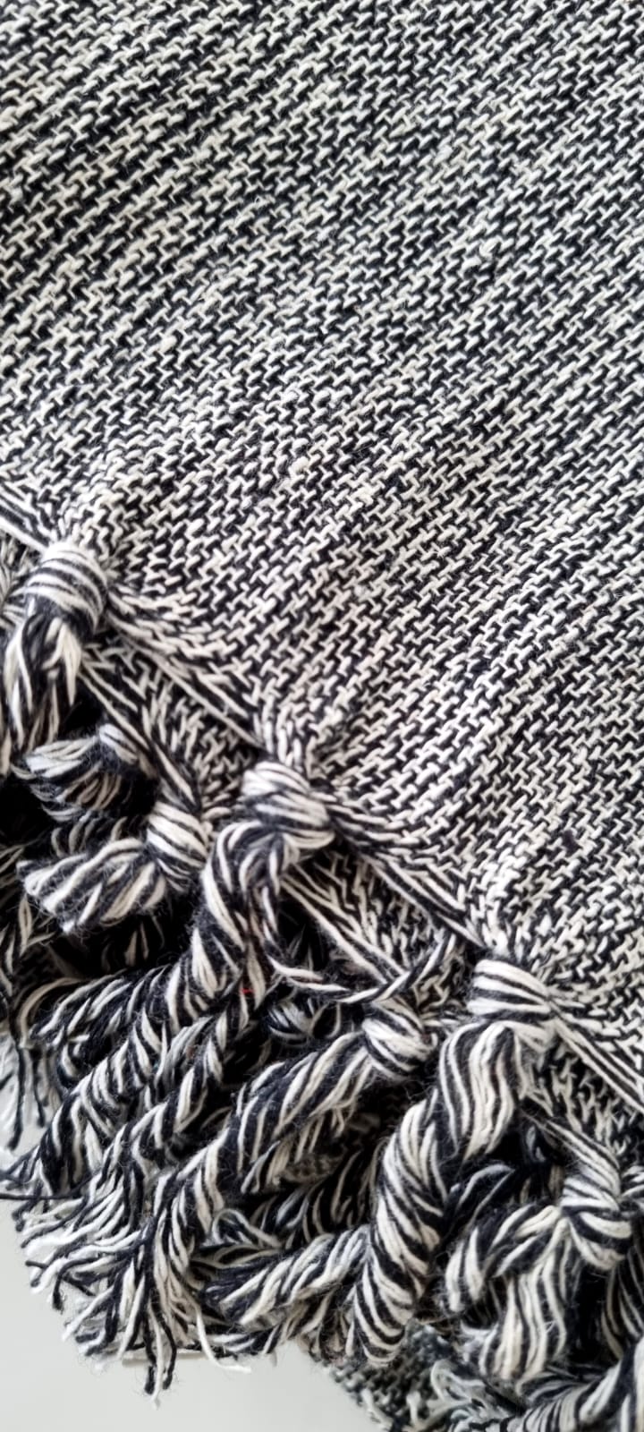 As franjas com nós são feitas a mão por artesãos, proporcionando resistência para não desfiar e ao mesmo tempo delicadeza.