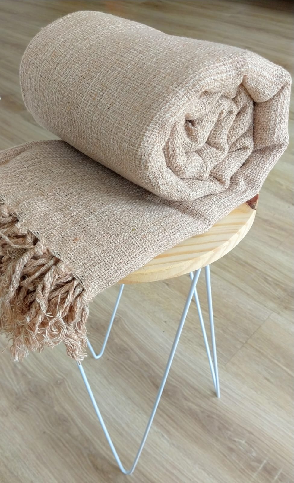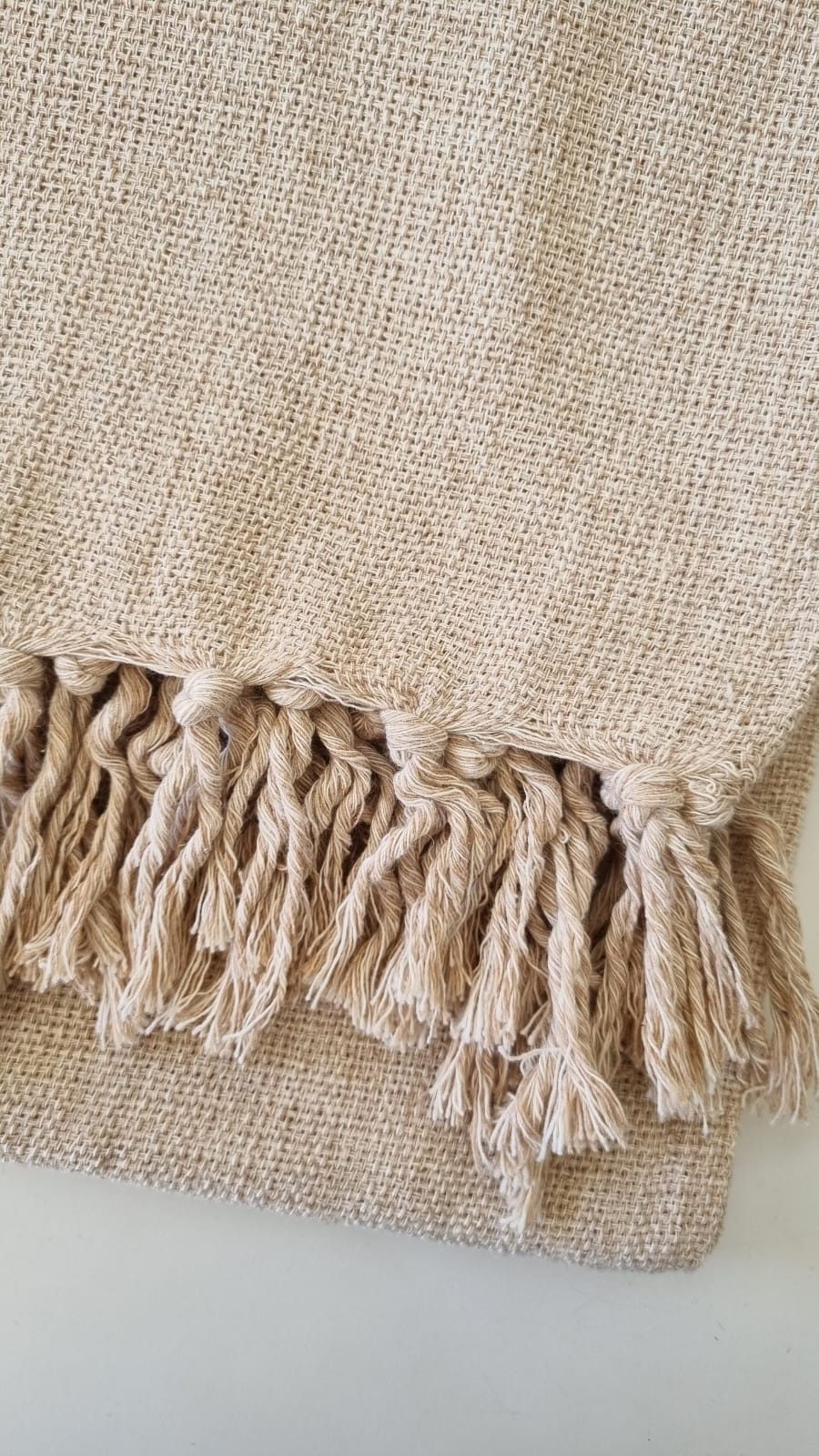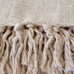 As franjas com nós são feitas a mão por artesãos, proporcionando resistência para não desfiar e ao mesmo tempo delicadeza.