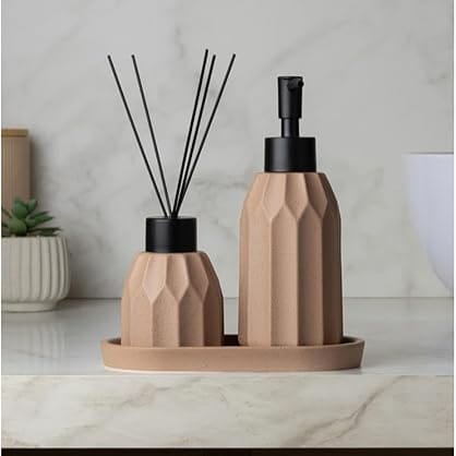Transforme seu banheiro em um oásis de organização e bom gosto com nossa coleção exclusiva de porta-sabonetes e difusor de varetas. Projetados para combinar funcionalidade impecável com design sofisticado, nossos produtos adicionam um toque de elegância e praticidade ao seu dia a dia. Escolha entre uma variedade de estilos, materiais e acabamentos para complementar perfeitamente a decoração do seu espaço, mantendo tudo em seu devido lugar e sempre ao seu alcance. Detalhes que fazem a diferença!