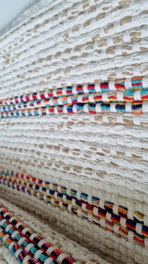 Tapete 0,6×1,2 colorido dupla face de algodão e juta artesanal no tear mineiro