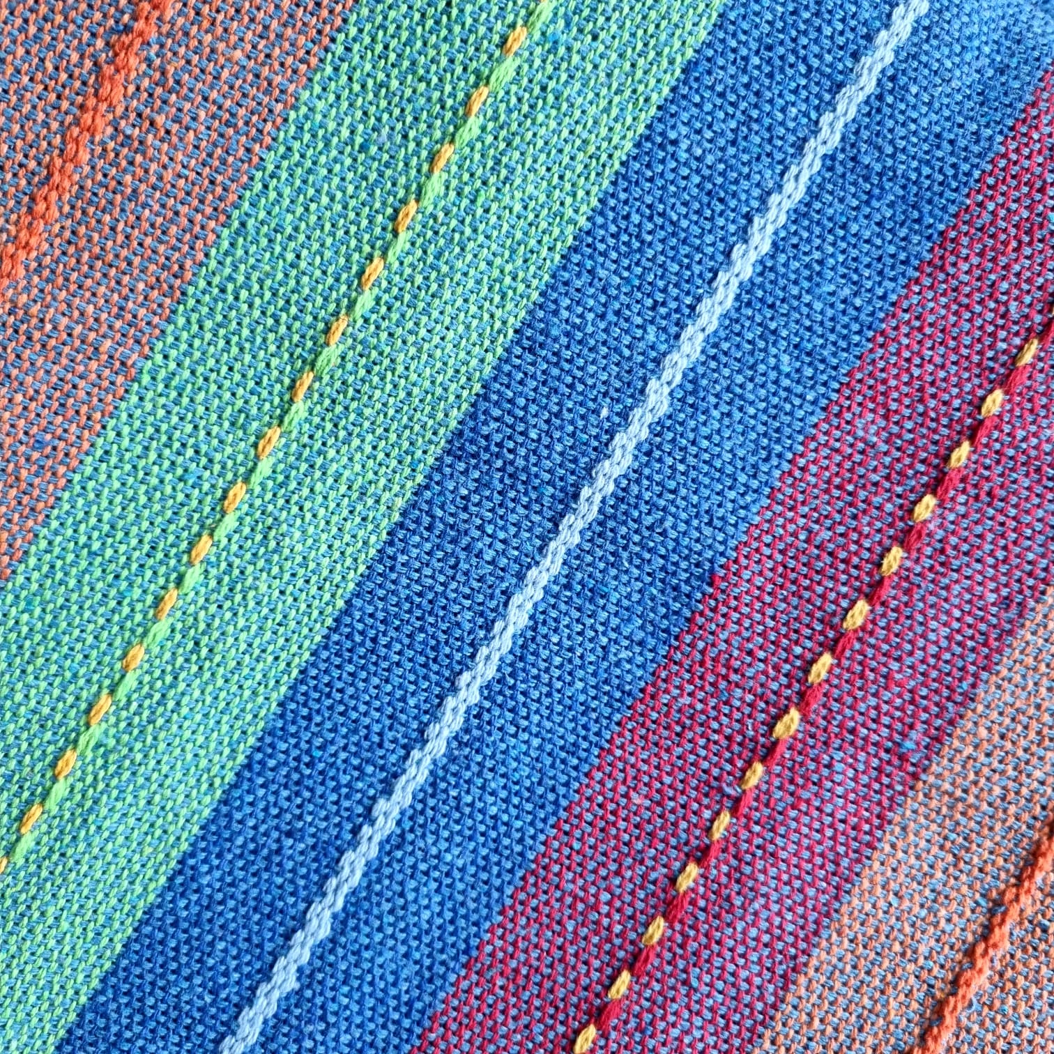 Toalha de mesa 6 lugares retangular colorida azul artesanal no tear mineiro