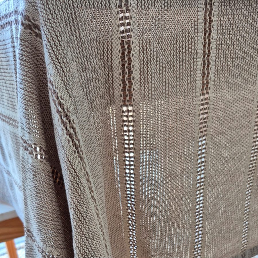 Lavar na máquina na opção “delicado ou lã”. Encolhimento 5% por ser um produto feito em fibra natural (algodão)