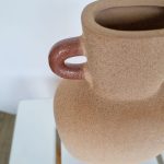 Vaso cachepô decorativo bege caramelo com 2 alças de cerâmica rústica
