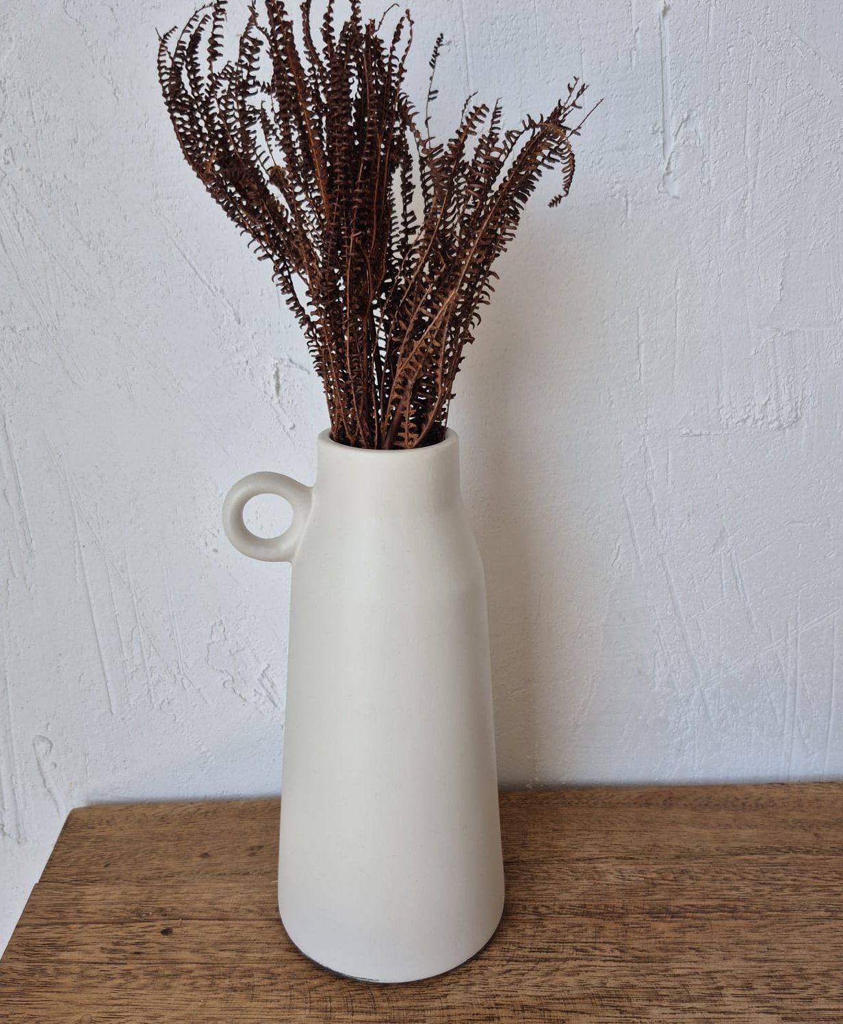 Vaso cachepô decorativo branco off white com alça de cerâmica fosca